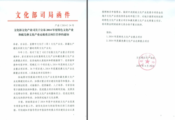 4月28日消息,近日下发的《文化部文化产业司关于公布2014年度特色文化产业和藏羌彝文化产业走廊重点项目名单的通知》中,中国工艺文化城被正式批准为“2014年度国家特色文化产业重点项目”,文化部文化产业司将会同财政部文资办将给予特色文化产业项目重点扶持。