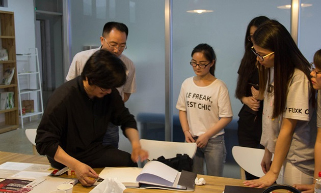 讲座结束后,在公司董事长吴景贤的带领下,还考察了视觉系的实训中心,并进行了认真的会谈和专业交流,吴景贤董事长热情地评点了广告策划与设计工作室学生所做的作品,并提出了宝贵意见,还在专业方面与师生们进行了深度沟通。