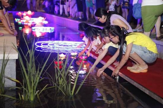 活动当天,正值中秋佳节,可大家依然提前早早来到,当天下午,大伙们就排起长队,来领一个个精致美丽的河灯,虽然现场人满为患,沸沸扬扬,大家依然愿意排队等待,积极响应参加这个中国传统的活动,同时享受这儿热闹欢快、喧闹繁华的节日气氛,期待着夜幕下亲手将河灯放入斜塘河中。