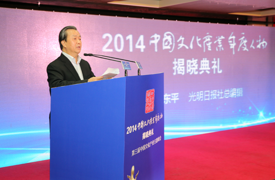 光明日报社总编辑何东平在2014中国文化产业年度人物活动中致辞