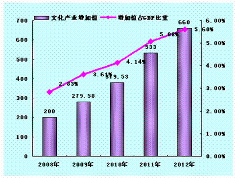 据全市文化部门汇总统计,2012年苏州市文化产业实现营业收入约2600亿元,文化产业增加值预计660亿元,在全市GDP中占比约5.6%。出台了《关于进一步促进苏州市文化产业发展的实施意见》(苏文产〔2012〕19号),确定了市级重点文化产业项目89个,总投资1038亿元,其中20亿元以上项目13个。张家港(动漫)产业园被国家广电总局正式批准成为国家影视网络动漫实验园,昆山国家影视网络实验园成为中国国际动画产业联盟交易中心。全市已形成7个国家级、5个省级、28个市级文化产业示范基地。命名了首批110家苏州市级重点文化企业,苏大维格光电科技股份有限公司成功在深交所创业板上市,成为苏州市首家上市的文化企业。争取省级文化产业引导资金扶持项目22个,共计2145万元,创历史新高;市级文化产业发展专项扶持资金扶持项目34个,共计1060万元;市文化产业担保基金共为8个项目提供约1.4亿元的担保贷款。成功承办首届中国·苏州文化创意设计产业交易博览会、第三届苏州江南十大创意策划师、十大创意策划案例评选,承办了全国首期文化产业投融资实务研修班、全国文化企业债券融资座谈会、全国文化产业信息通讯员工作培训会等重要会议和活动。