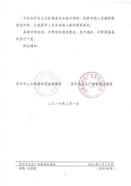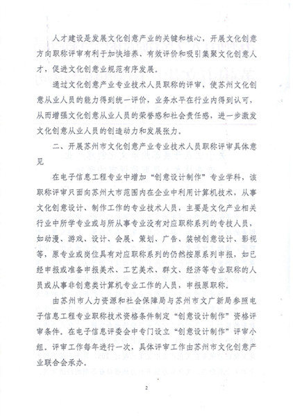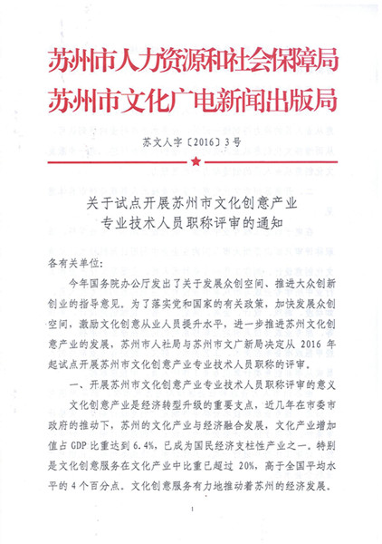 关于试点开展苏州市文化创意产业专业技术人员职称评审的通知