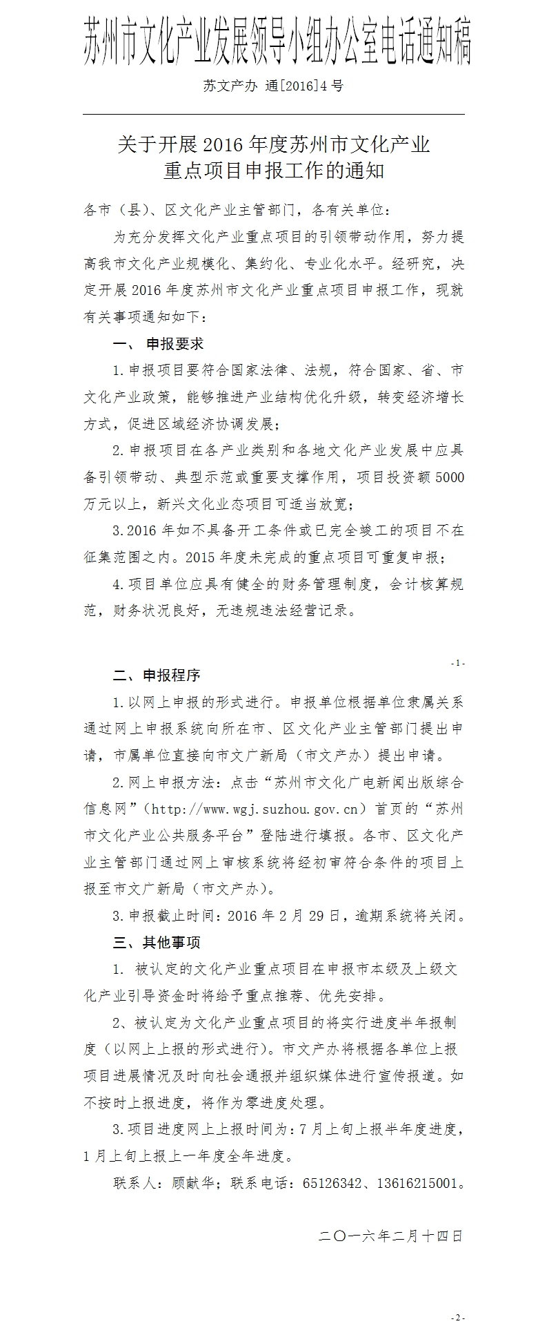 关于开展2016年度苏州市文化产业重点项目申报工