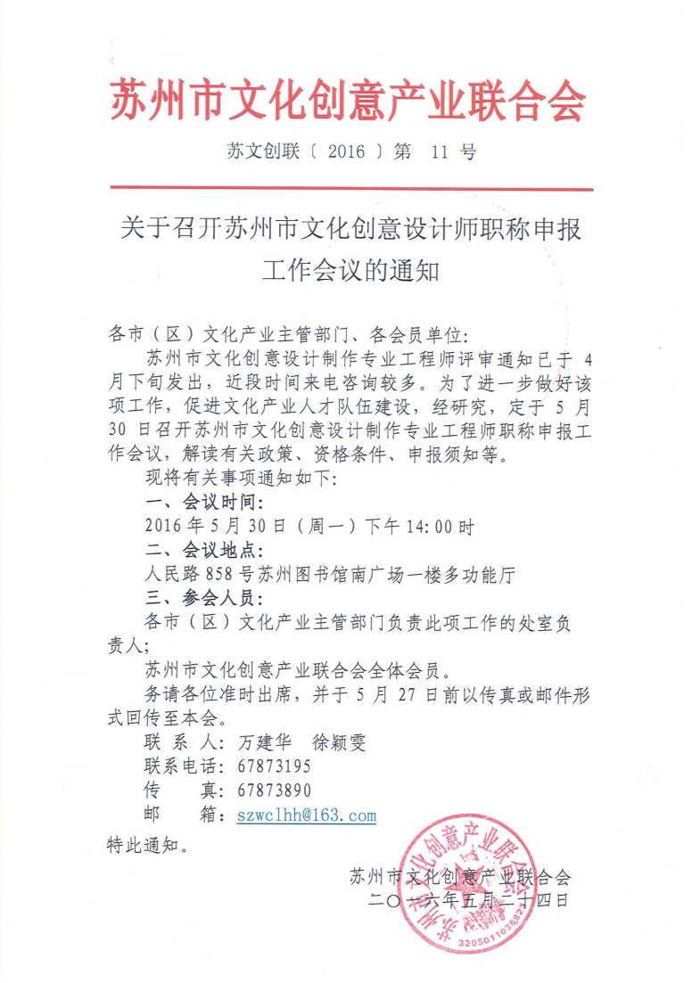 关于召开苏州市文化创意设计师职称申报工作会