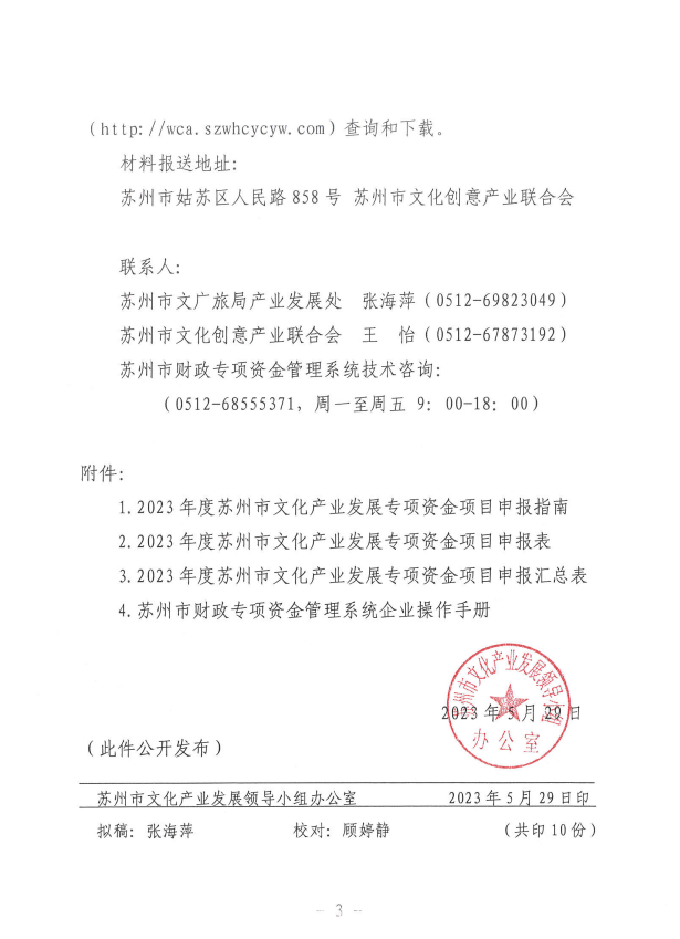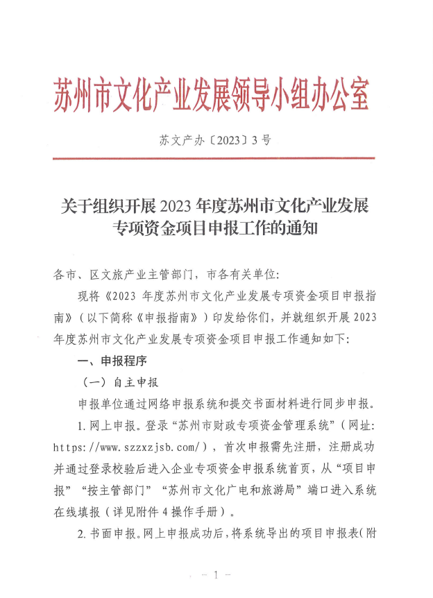 苏文产办〔2023〕3号 关于组织开展2023年度苏州市文化产业发展专项资金项目申报工作的通知