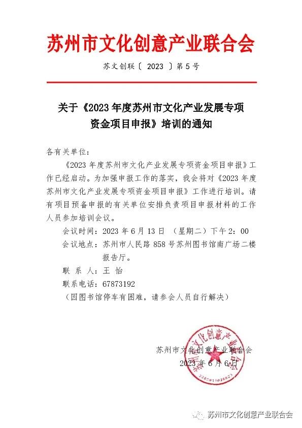 关于《2023年度苏州市文化产业发展专项资金项目申报》培训的通知