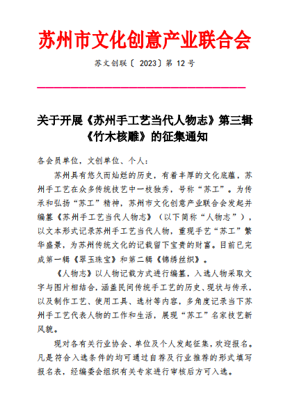 关于征集入选《苏州手工艺当代人物志》的通知
