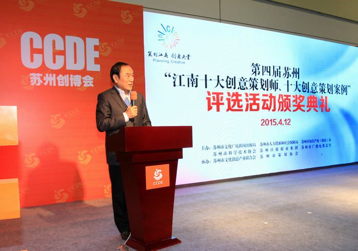 2015年4月12日,由苏州市文化广电新闻出版局、苏州市人力资源和社会保障局、苏州市知识产权(版权)局、苏州市科学技术协会、苏州日报报业集团和苏州市广播电视总台主办,苏州市文化创意产业联合会、苏州市策划协会联合承办的第四届苏州“江南十大创意策划师,十大创意策划案例”评选活动颁奖典礼在第四届“创博会”活动中心隆重举行。