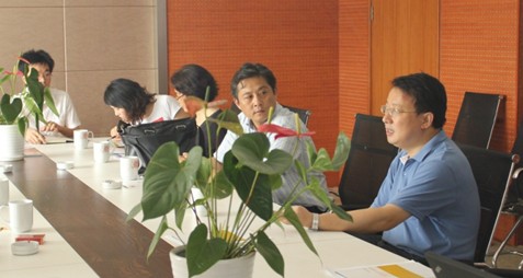 汤会长对文创园开展的相关工作与获得的成效给予了充分的肯定。他表示,文创园自开园以来一路高歌猛进,势头惊人,能聚集到这么多的公司这么好的人才实属难得,取得的成绩也令人欣慰。他建议文创园要趁势而上,一是要进一步强化人才链的建设,吸引更多的优秀人才集聚;二是要加快配套设施建设,为入驻企业提供良好的服务环境;三是要突出重点,形成特色,注重引进规模大、发展潜力好的龙头企业,形成产业发展亮点。汤会长还就数字出版、非物质文化遗产的电子商务和网络公共服务平台建设等问题与大家进行了探讨。