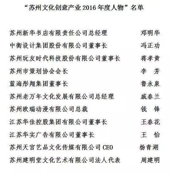 《苏州文化创意产业2016年度人物》名单正式揭晓