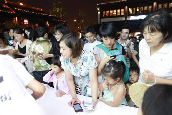 活动当天,正值中秋佳节,可大家依然提前早早来到,当天下午,大伙们就排起长队,来领一个个精致美丽的河灯,虽然现场人满为患,沸沸扬扬,大家依然愿意排队等待,积极响应参加这个中国传统的活动,同时享受这儿热闹欢快、喧闹繁华的节日气氛,期待着夜幕下亲手将河灯放入斜塘河中。