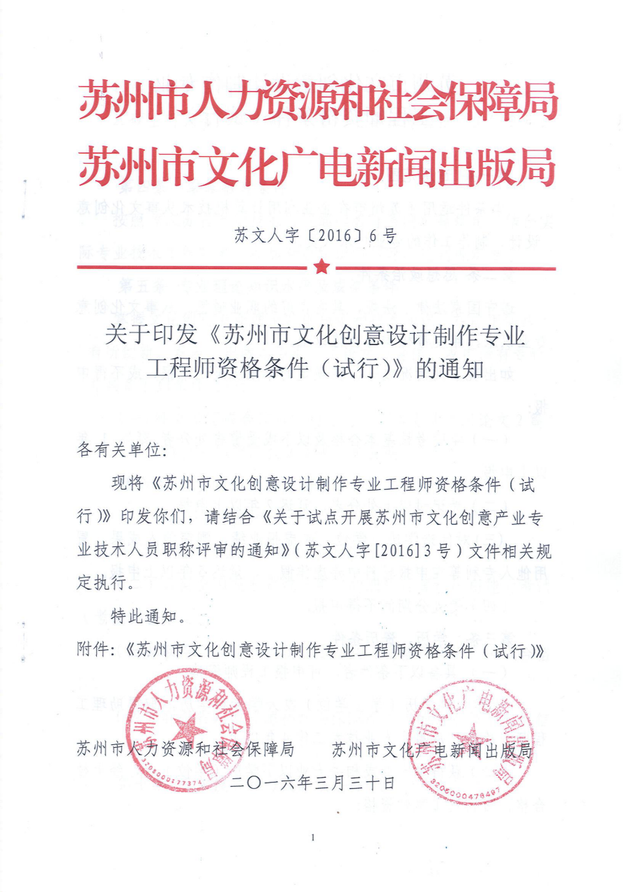 关于报送苏州市文化创意设计制作专业工程师职称评审材料的通知