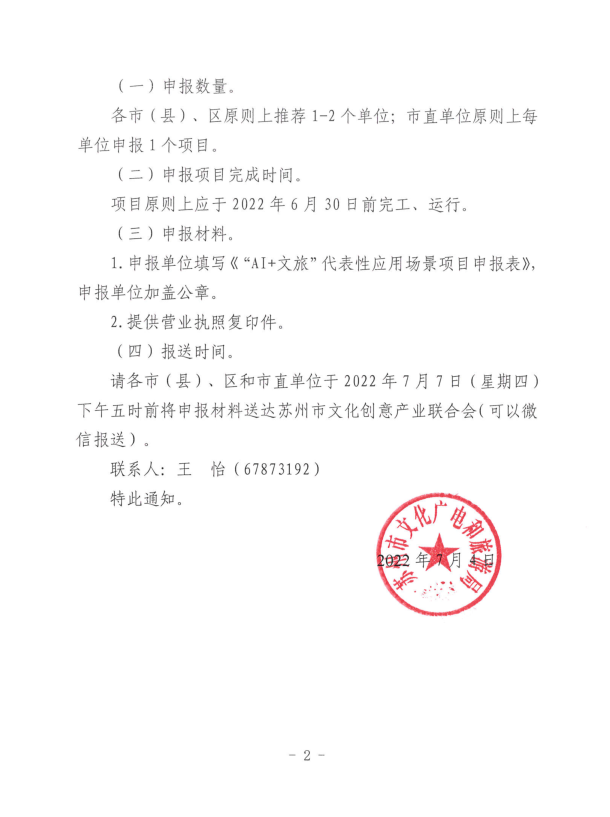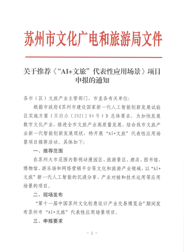 关于推荐《“AI+文旅”代表性应用场景》项目申报的通知